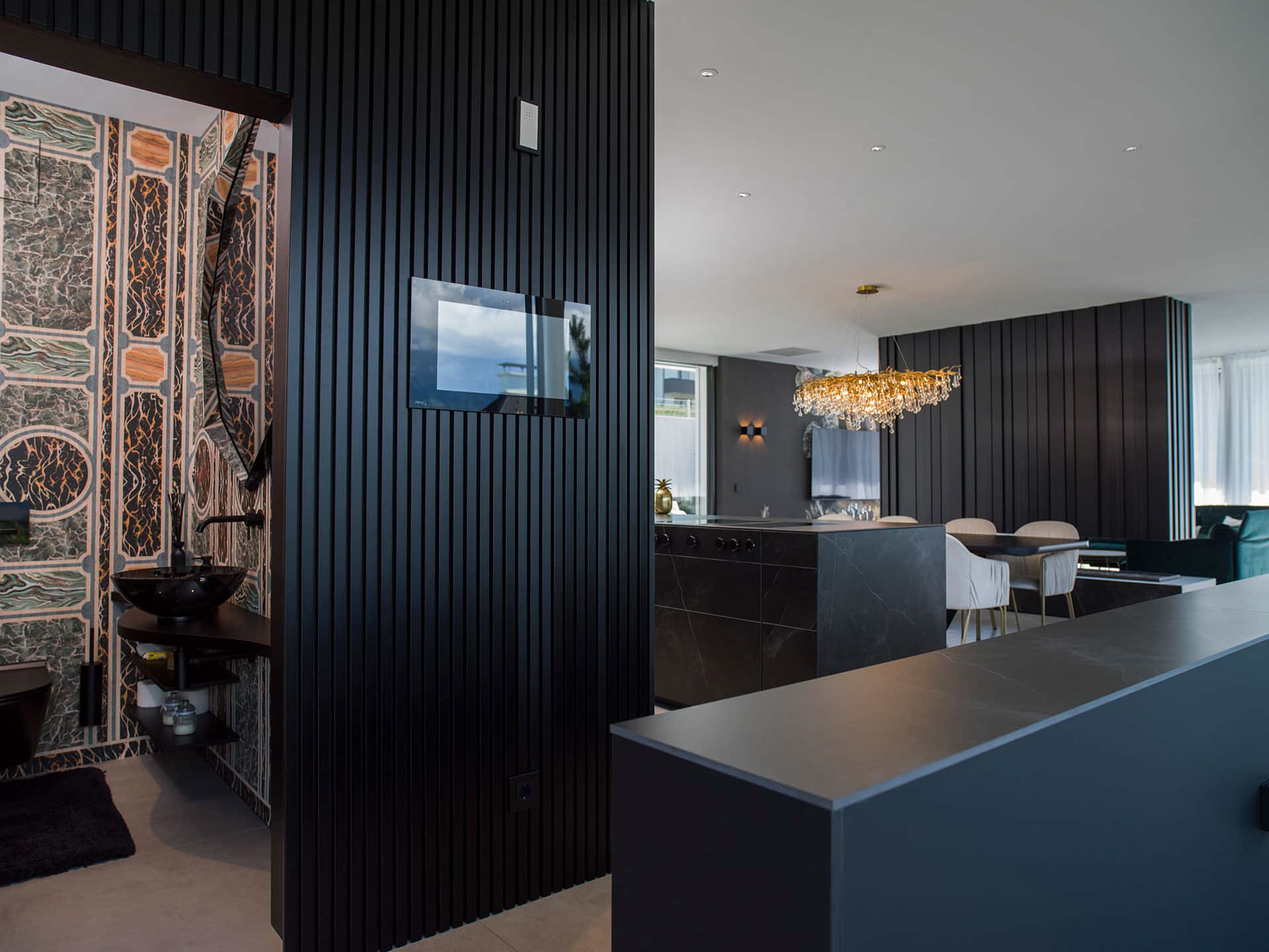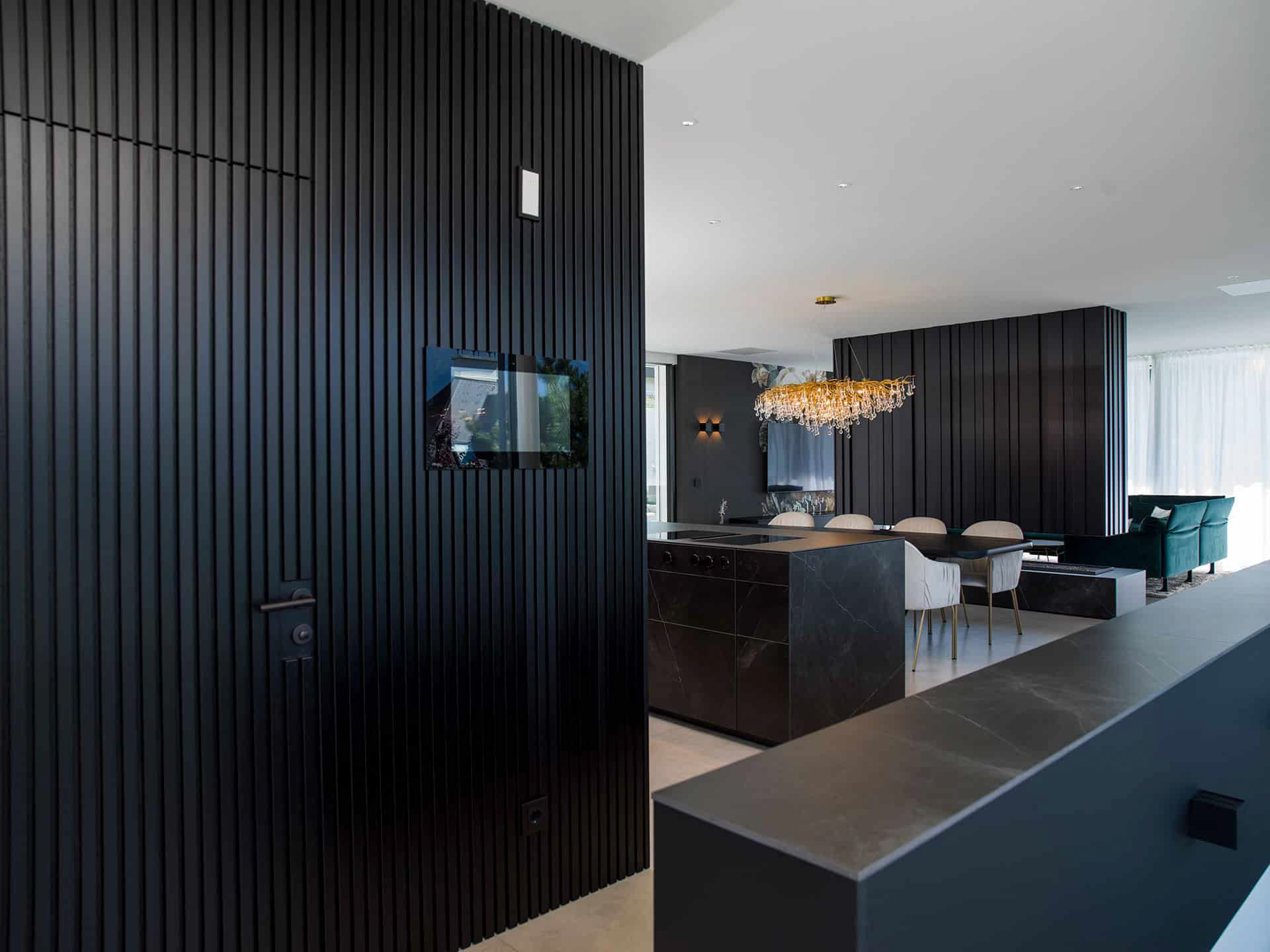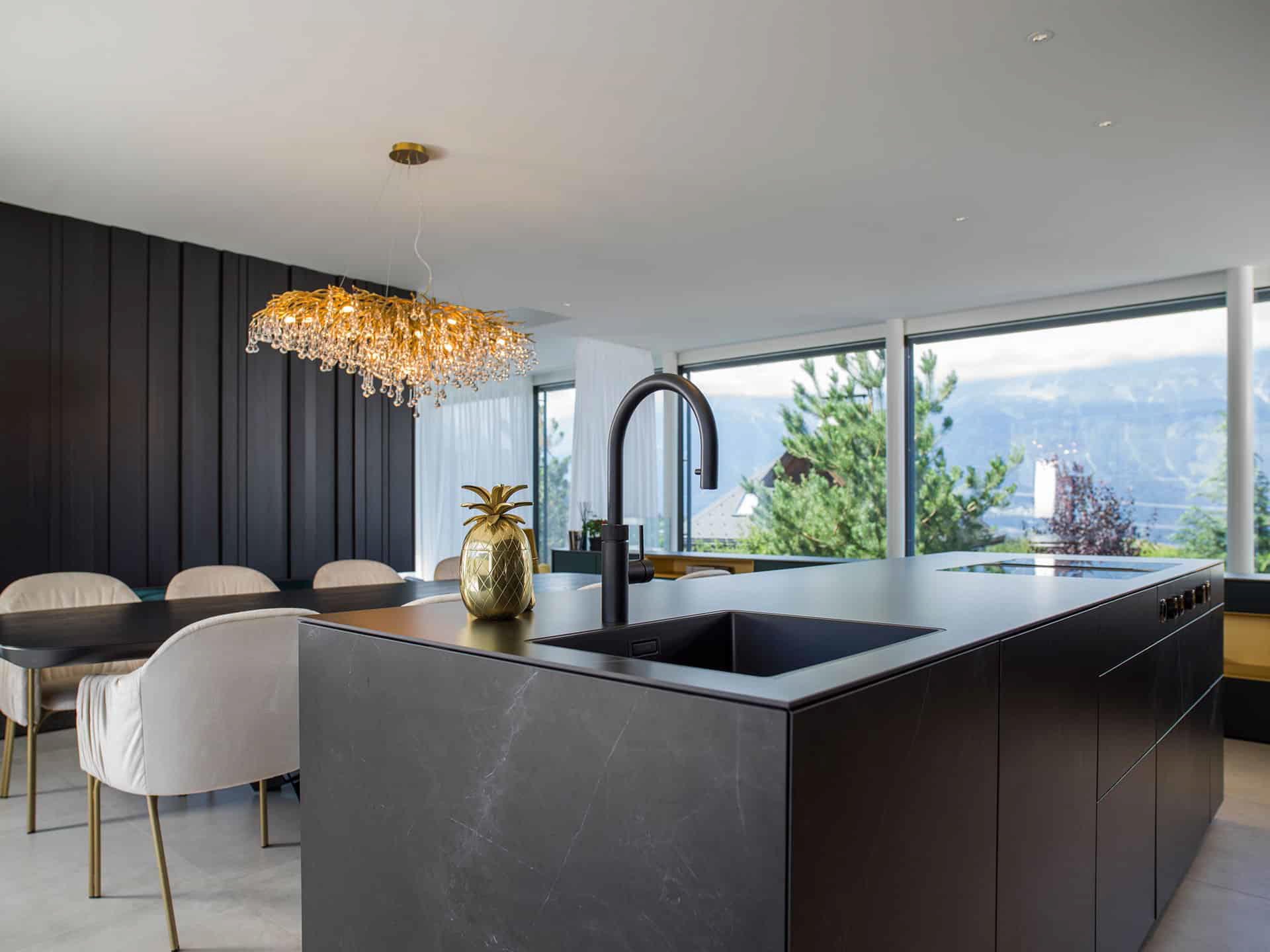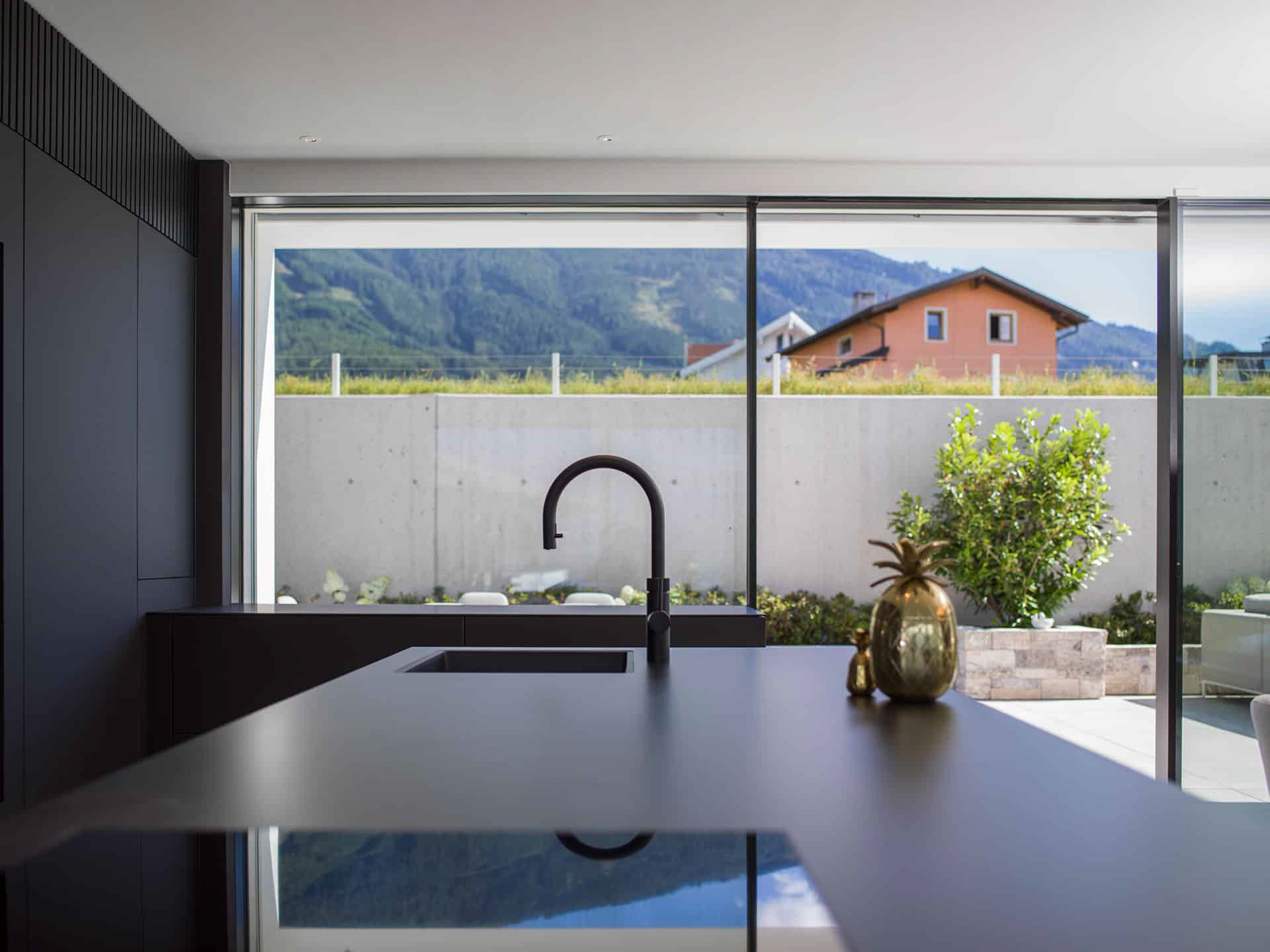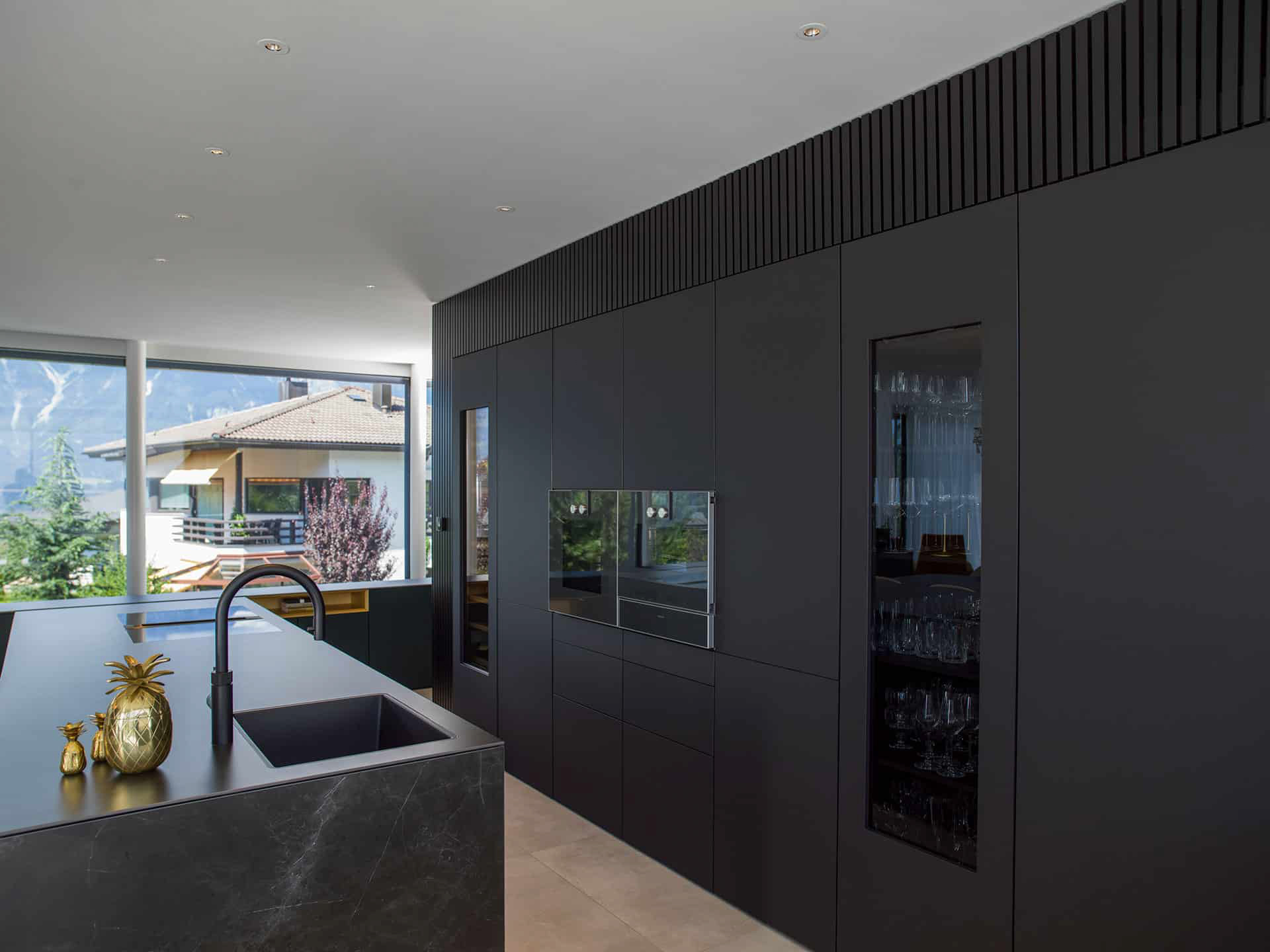 Signature / Leicht / Modell F45, Farbe Schieferschwarz Kombination Insel: Modell Kera, Farbe Iguazu / Arbeitsplatte Keramik: Iguazu