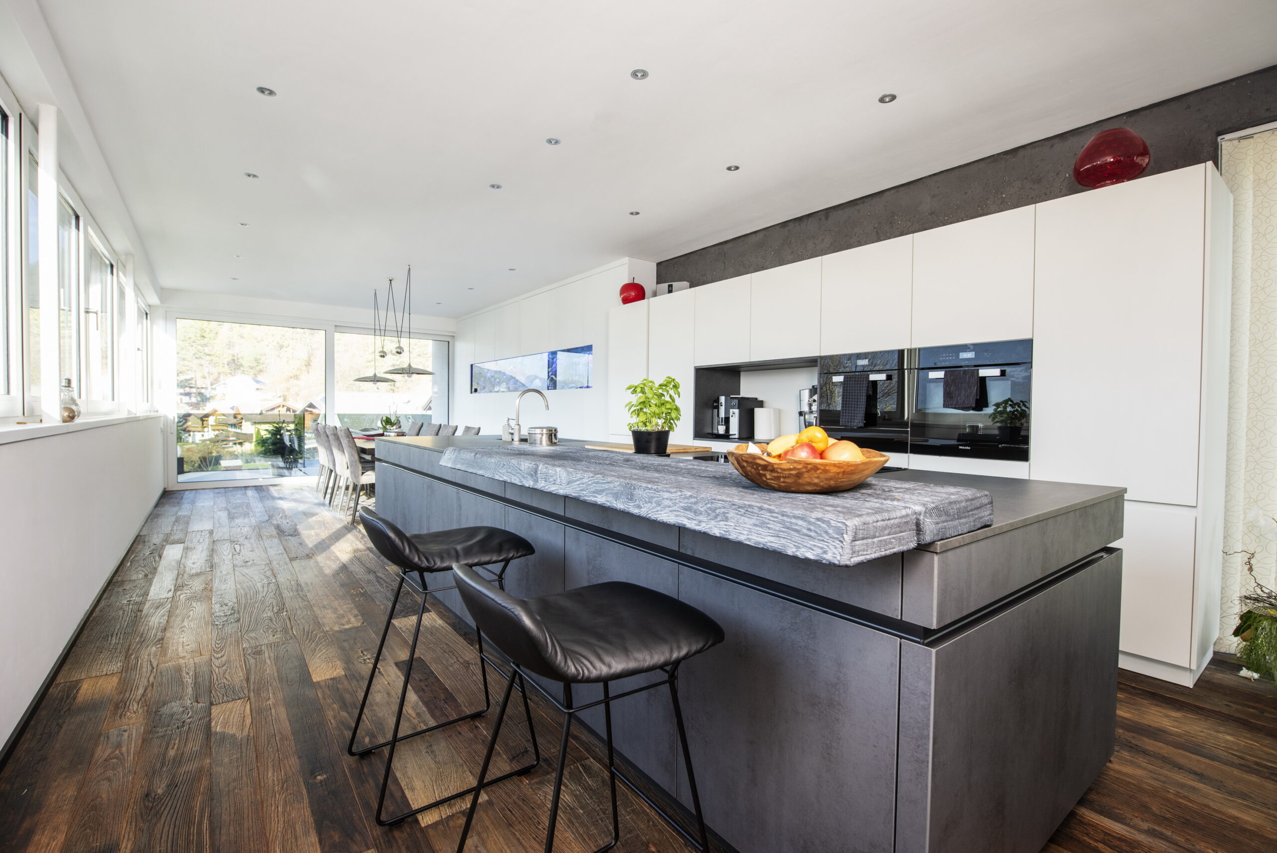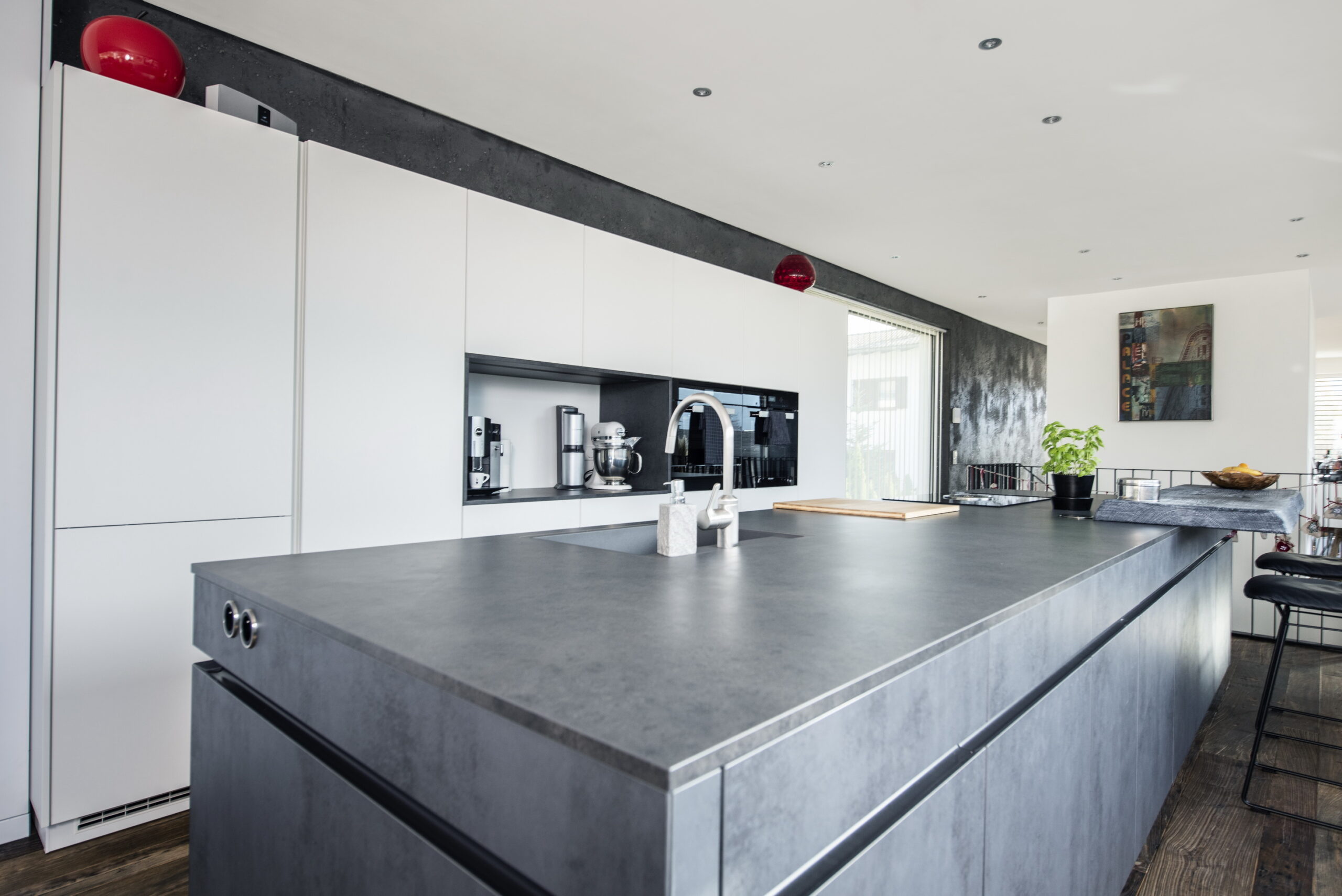 Kernige Angelegenheiten ZURÜCK ZUR ÜBERSICHTKernige AngelegenheitenEssential / Häcker Concept 130 / Modell Comet, Spachtelbeton perlgrau / Kombination Hochschränke: TopSoft, Farbe Kristallweiß / Arbeitsplatte Dekor: Spachtelbeton perlgrau ZURÜCK ZUR ÜBERSICHT